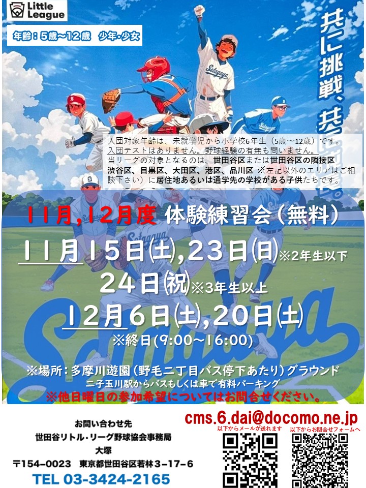 2025年11月,12月の体験会予定